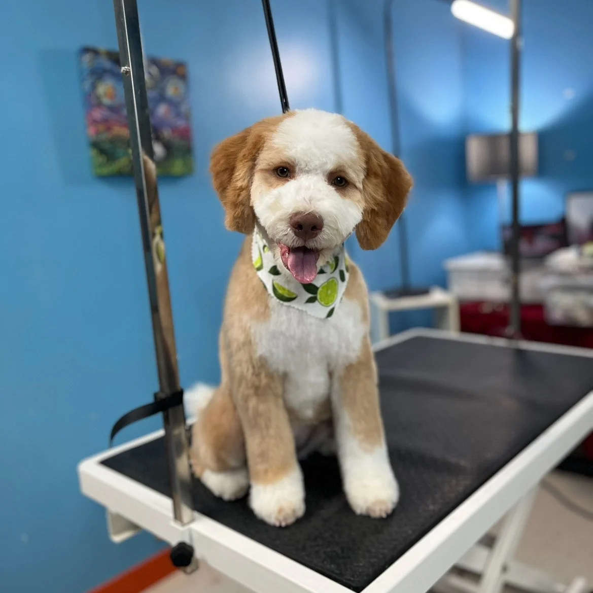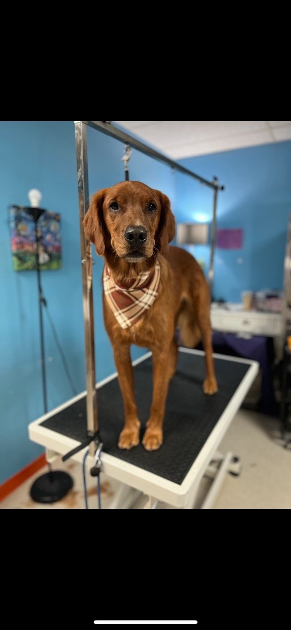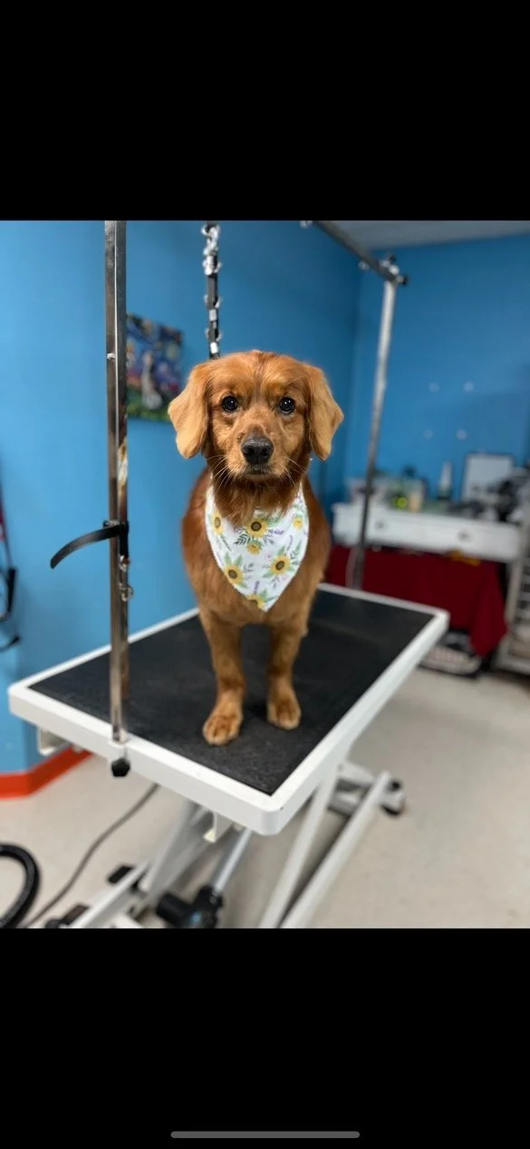 Set your new puppy up for a life of relaxed grooming experiences! If you have a long-haired breed, a doodle of any type, or simply prefer the ‘high and tight’ look on your golden, start your puppy young and let us help ease them into the grooming experience, before they need to stand on the table for 2+ hours for their first full body trim. Your puppy will have the chance to experience the sights and sounds of the grooming room, be able to stand on the table, receive baths, nail trims, quick face and sanitary area cuts, brushing, ear care, etc, all while munching on super tasty snacks to help form positive associations with the process.