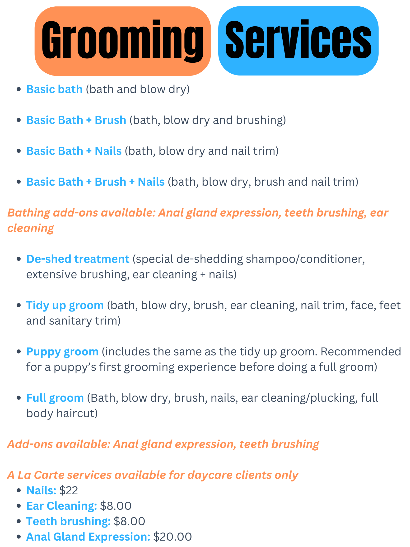Existing clients please log into your gingr portal to request grooming services.